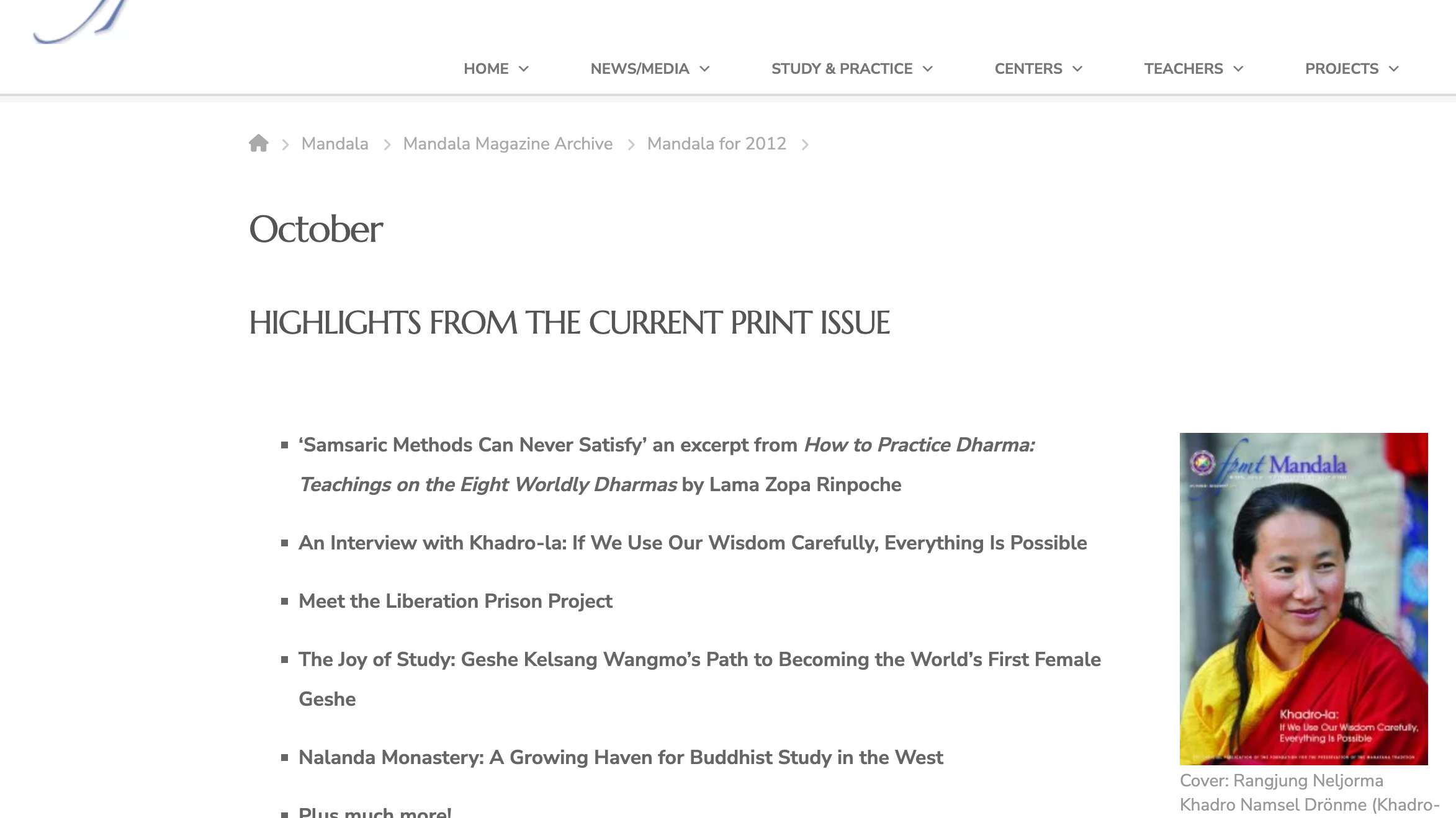 Some Work published in Mandala Magazine by FPMT